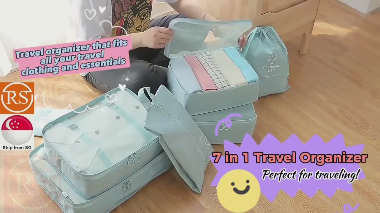 • ❤️New Version 7-in-1 Travel Organiser Waterproof Luggage Organiser Travel Pouch with Belt❤️SG Seller❤️